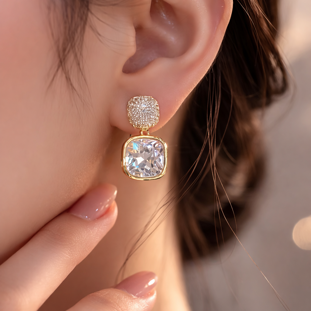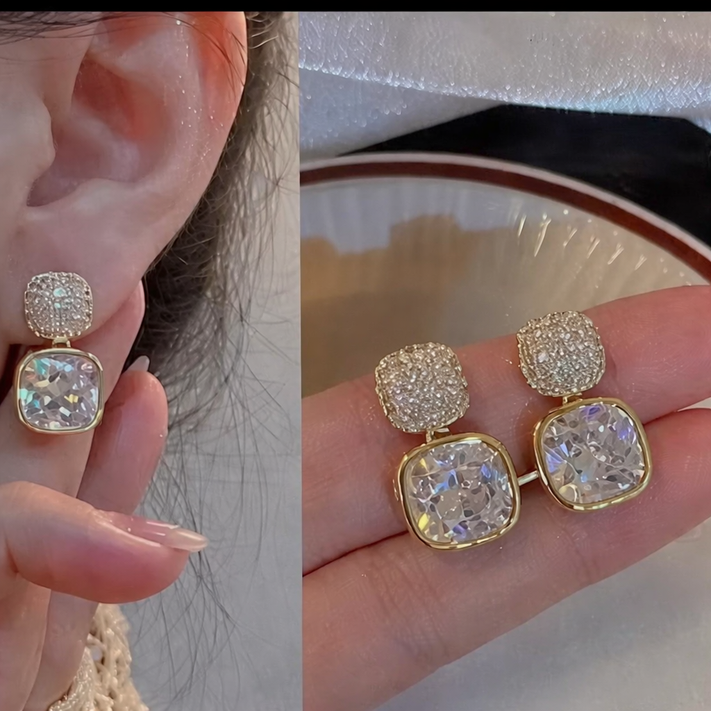 Base Metal: Alloy Plating: Silver Plated Sizing: Non-Adjustable Stone Type: Cubic Zirconia/American Diamond Type: Studs Net Quantity (N): 1 Rectangle Korean Earrings.