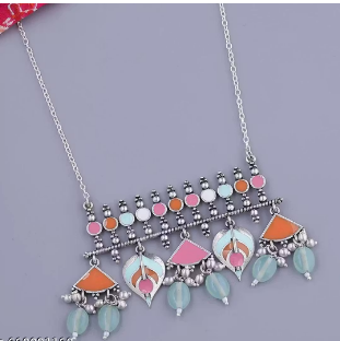 Base Metal: Alloy Plating: Silver Plated Stone Type: Artificial Stones & Beads Sizing: Adjustable Type: As Per Image Net Quantity (N): 1 ANAYSHAAZ Collections Bagh-E-Fiza Inspired Designer Necklace for Women captures garden-inspired beauty with an artistic blend of nature motifs and traditional flair. Country of Origin: India