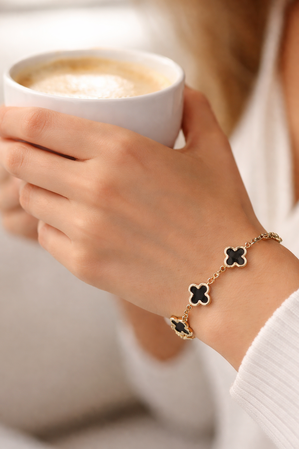 Enhance your look with this stylish Black & White Clover Chain Bracelet designed for everyday elegance. Featuring a modern clover charm design with a classy gold-tone finish, this bracelet perfectly complements both casual and party outfits.